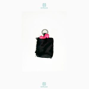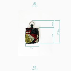 Porta cuffiette in seta con ricamo perline colorate con moschettone.